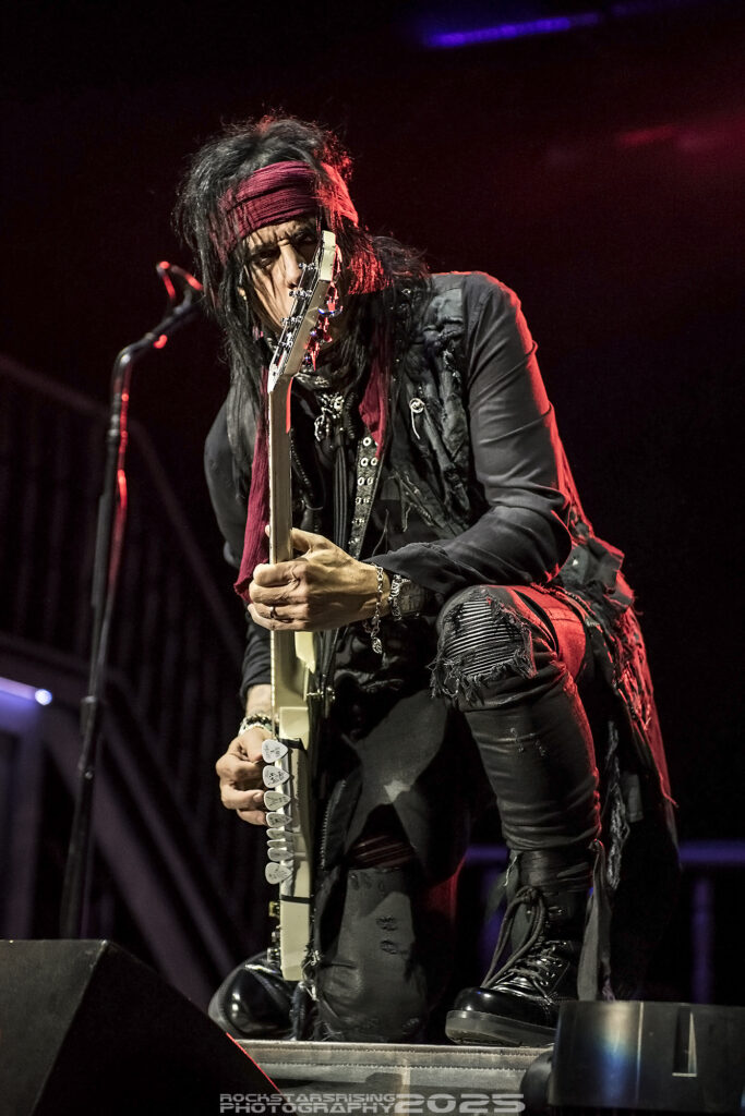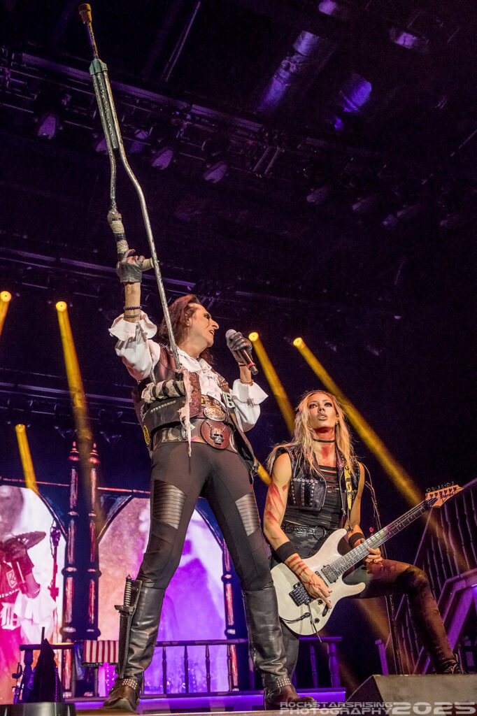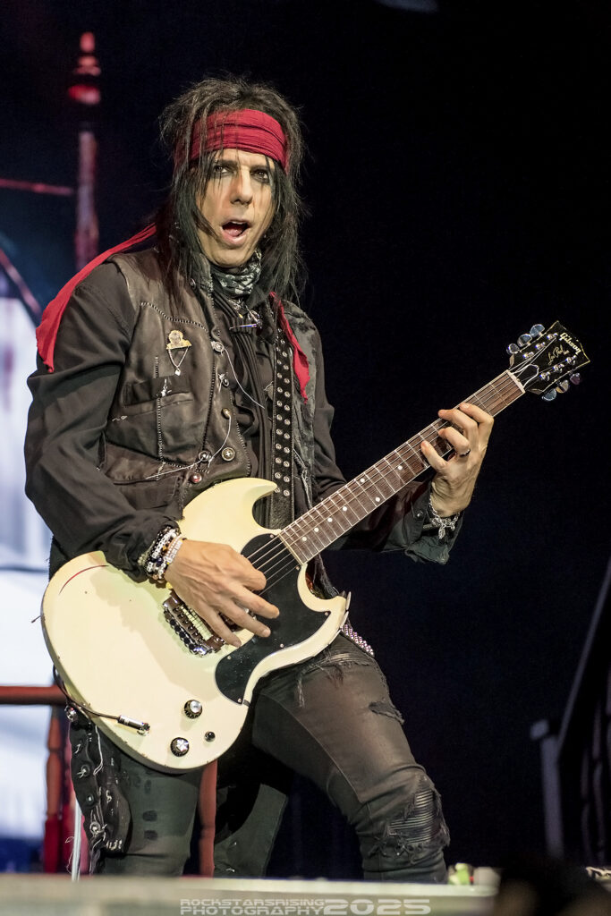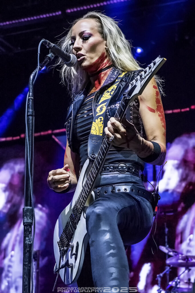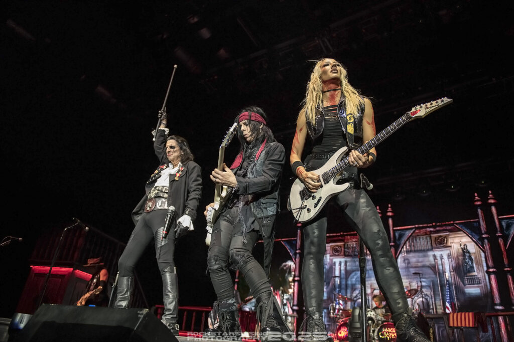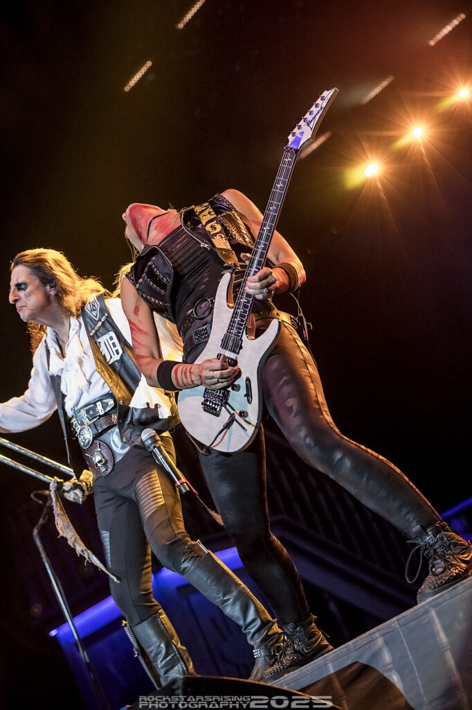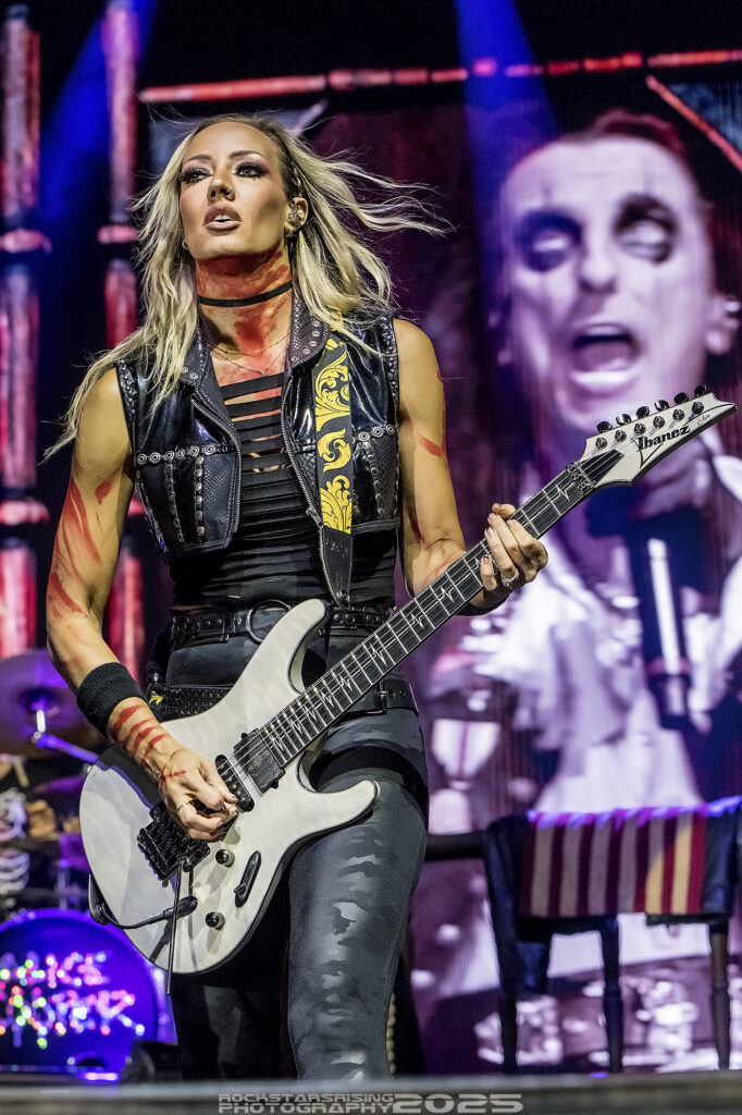 It’s solo time! The lights come up to reveal Nita Strauss at the top of one of the flights of stairs and she kicks off the solo stream. She really is a very talented guitarist as this little solo session proves but she gives way to Tommy Henriksen and he, in turn, gives way to Ryan Roxie before all three get together, along with Chuck Garric and his bass, to give us the Black Widow Jam.
