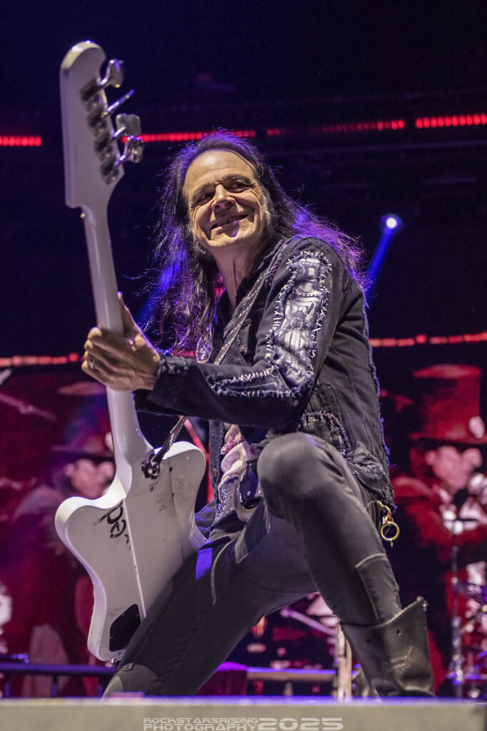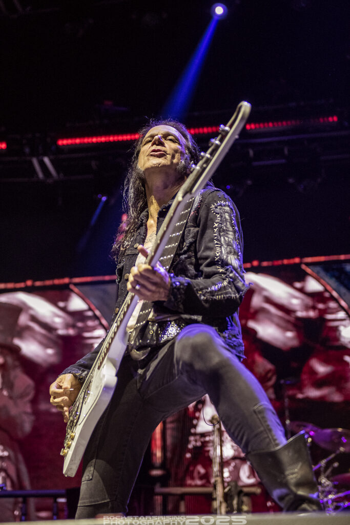 Of course, while the night should have been yet another triumph for the band it hadn’t gone unnoticed that Black Sabbath’s Ozzy Osbourne had passed away earlier in the day and so a short tribute to him finished with the crowd chanting “Ozzy, Ozzy, Ozzy . . .”.