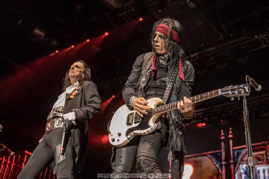 The band have been on stage now for around an hour with no let up and AC returns to the stage to give everybody some Poison! Time for more theatrics as AC loses his head to Cheryl dressed as Madame la Guillotine, to the sound of the Ballad of Dwight Fry. AC stays dead long enough for the band to give a rendition of I Love the Dead while Cheryl waltzes around the stage carrying AC’s severed head!.