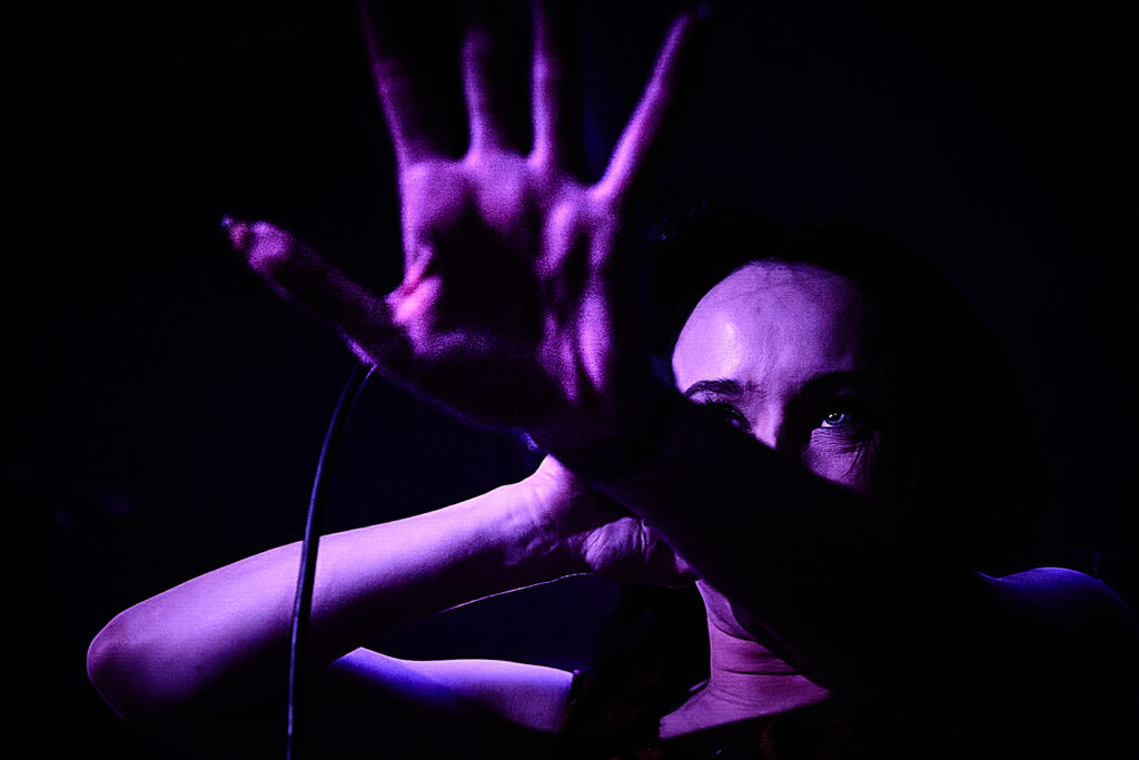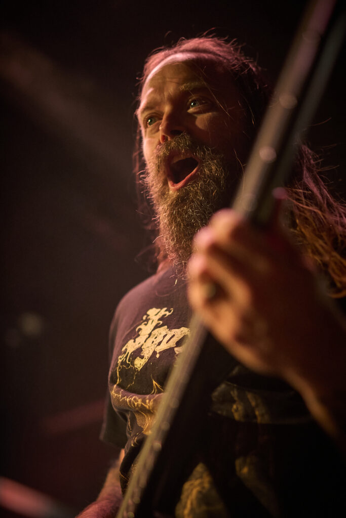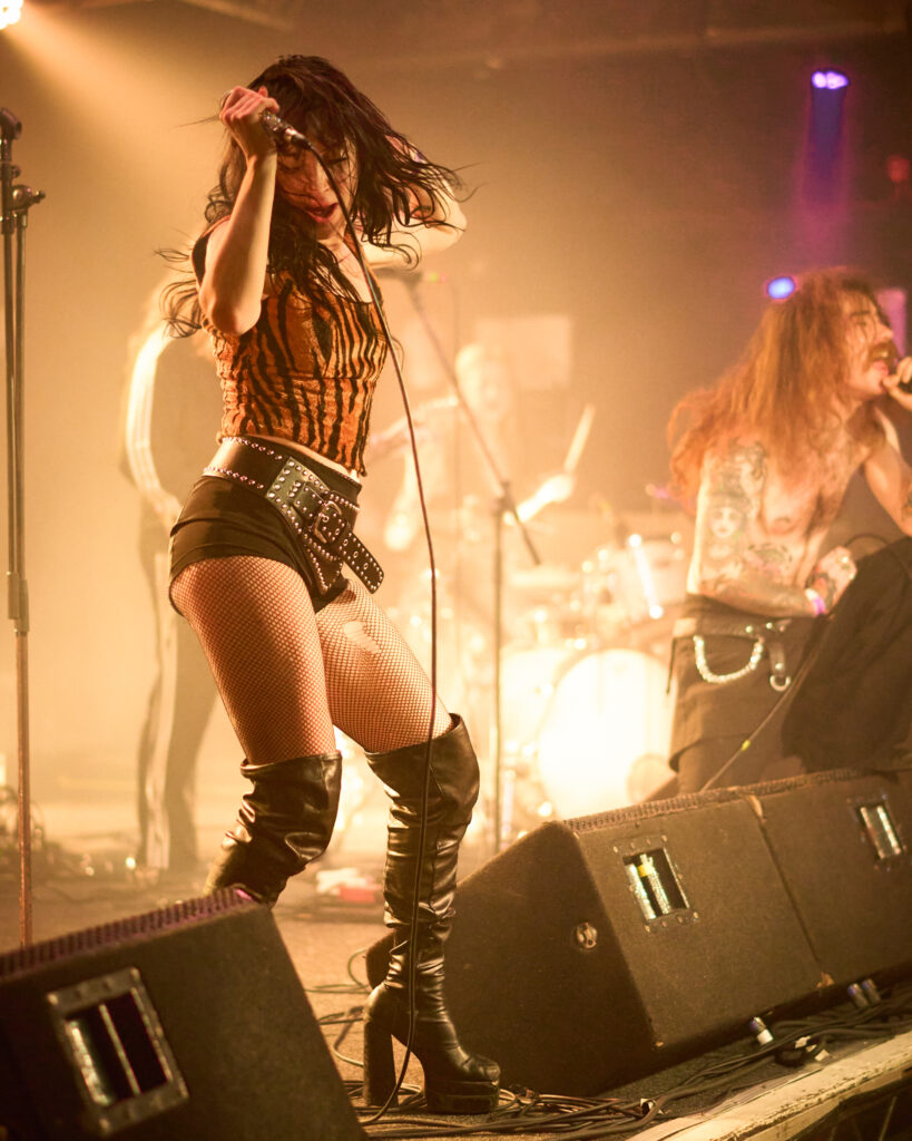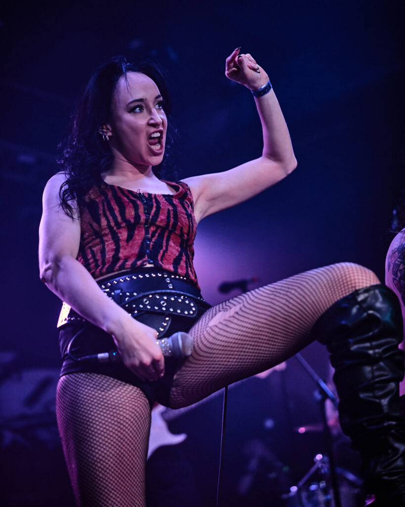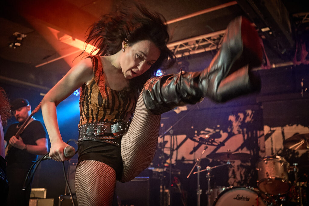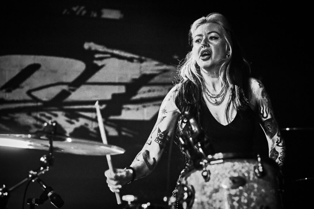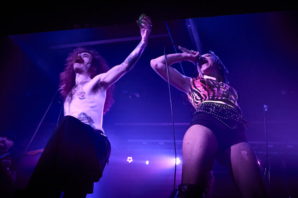 The dual vocal styles complement each other nicely – Kate and Mitch are constantly bouncing off each other, and at times seem to be locked in a game of one-upmanship in terms of who can give out the rawest energy. Halfway through the set the band takes a breather for a moment while Kate gets on the mic to rail against inequality, violence against women and women’s rights. Towards the end, Mitch tells the heartbreaking story of recently losing his father, and how much his dad believed in the band. He thanks the crowd for helping keep his dad’s spirit alive at every gig – it’s a truly tear-jerking moment. He’s keen to bring the spirits up again and not finish the gig on negative energy, so he dives into the crowd once more for the high adrenaline finishers ‘FKA’ and ‘The Pleasures’