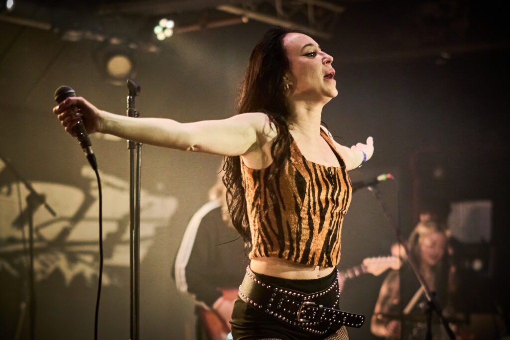The Sheffield Corporation is still filling up when the Leicester 6 piece come on, but they waste no time in grabbing our attention with some high energy, punky electro-indie type vibes. Lead vocals are split 50:50 between Mitch and Kate – each as outgoing as the other, and neither are afraid to get right in your face. My first impressions are that there is a strong ‘Idles’ influence going on, right from the guitar sound and riffs, to the lyrical content and delivery…. And I mean that in a highly complimentary way… these guys and girls aren’t just copycats; they certainly have their own style and twist on things.