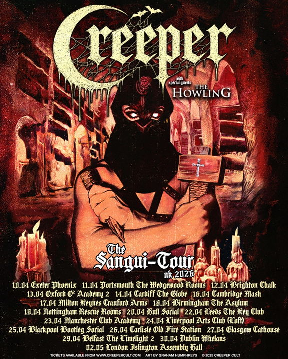 As 2025 breathes its final breath, CREEPER are already set to break out of the abyss in a big way in 2026. Their first plans for the year ahead come with the news that they will embark upon the ‘SANGUI-TOUR’ in April – an extensive run of intimate shows in which they will perform songs from both critically adored ‘SANGUIVORE’ albums.