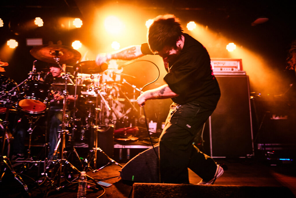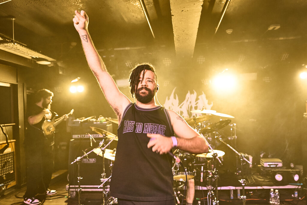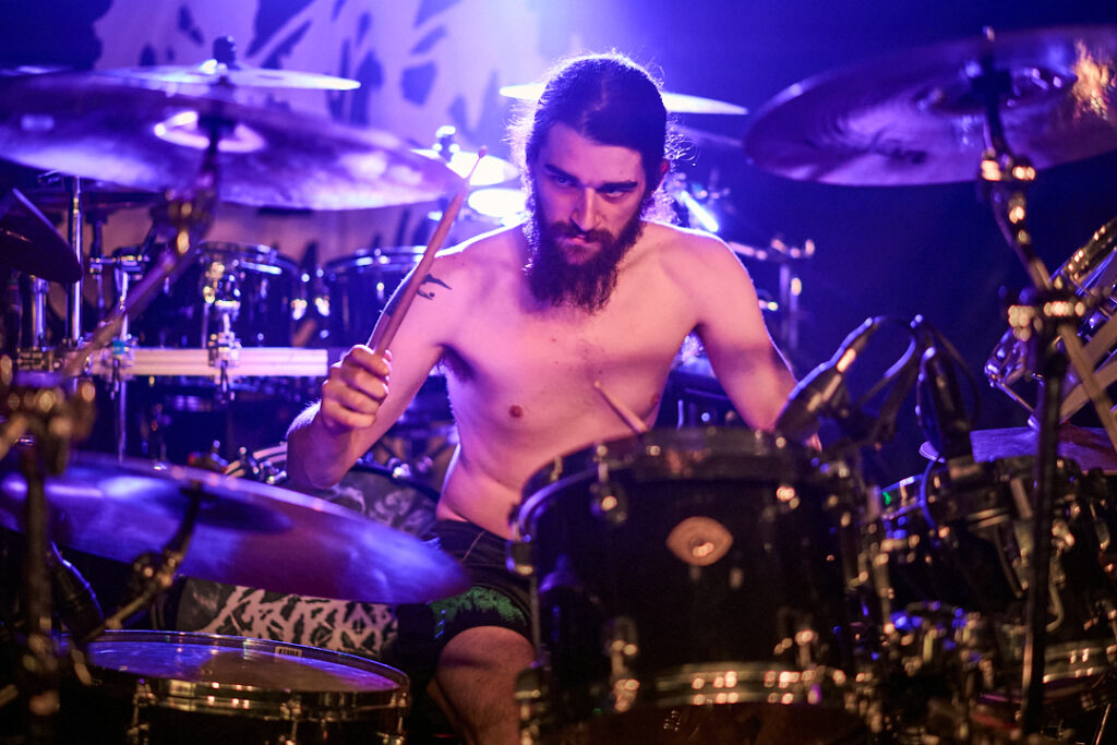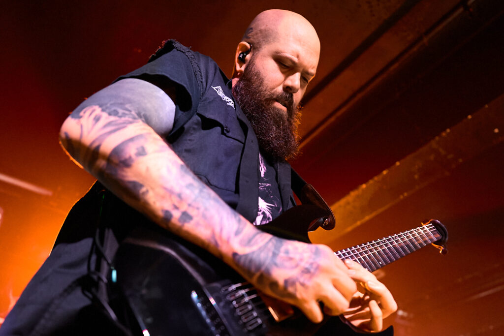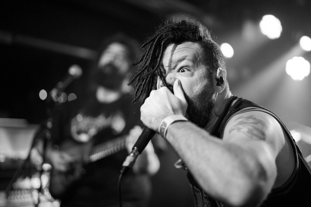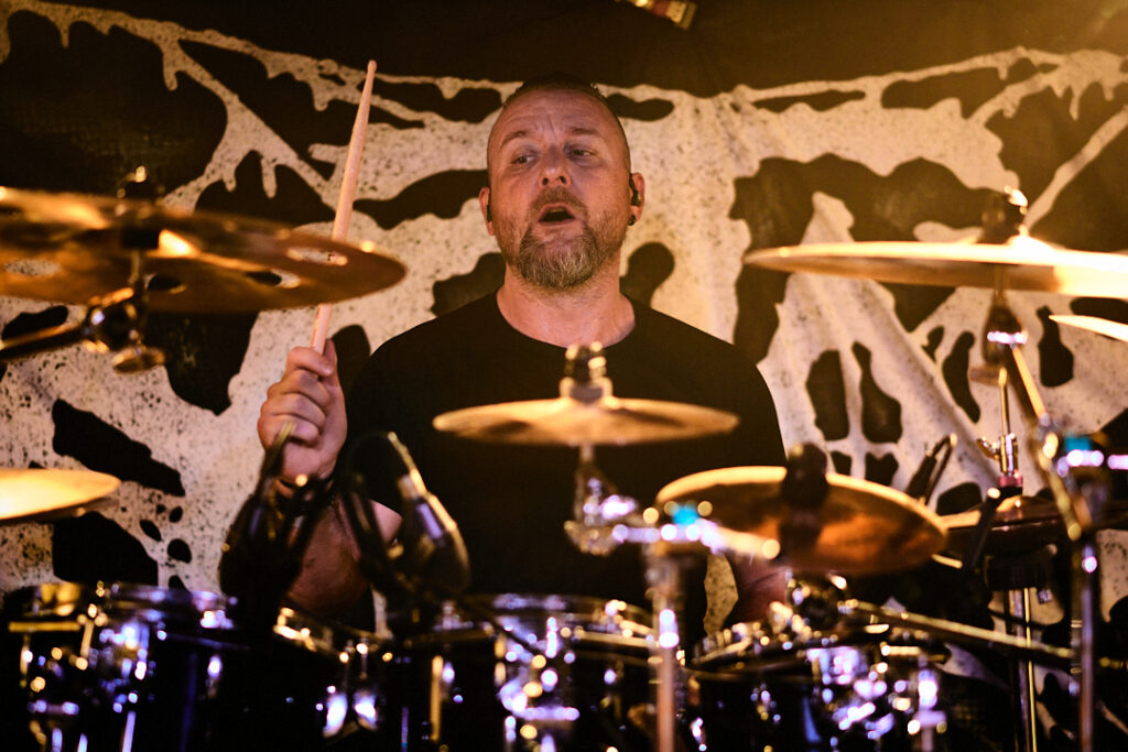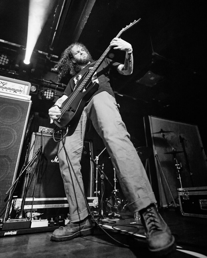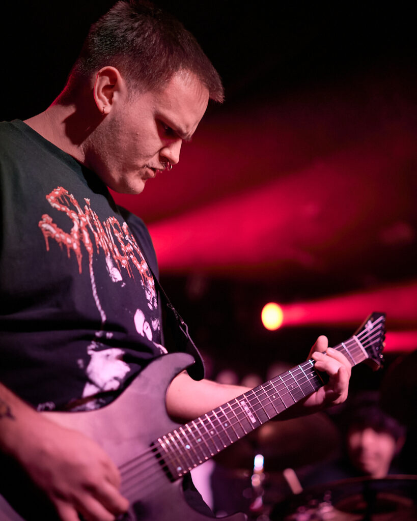 First up are Chat… no sorry, Corpse Pile. Metal does appear to have ‘Piles’ at the moment and, Christ, could this lot tear your arse a fresh hole! Lurching guttural vocals, frequent tempo changes, and a particularly dirty low-end bass give a surprising groove to the sound that I can best describe as ‘Gore-slam’. Everyone loves a beatdown and so there’s plenty of moshing and slam dancing in the crowd right from the get-go. Corpse Pile have already got things off to a wild start! Perennially pissed off, vocalist Jason Frazier declares they’re from the ‘United shithole of America’ – and they’re clearly not proud of it. He proceeds to decry everything from Elon Musk, transphobes, Trump, to even pavements (sorry ‘sidewalks’) or rather Texas’s lack of them. By the end, they could have squeezed another song in without so much talk, but they have a working-class ethos, are proud of it and their passion is to be admired. A raucous and ready crowd gleefully cheer on closing number ‘Us vs Them’ – with those new to the party (such as me) suitably impressed.