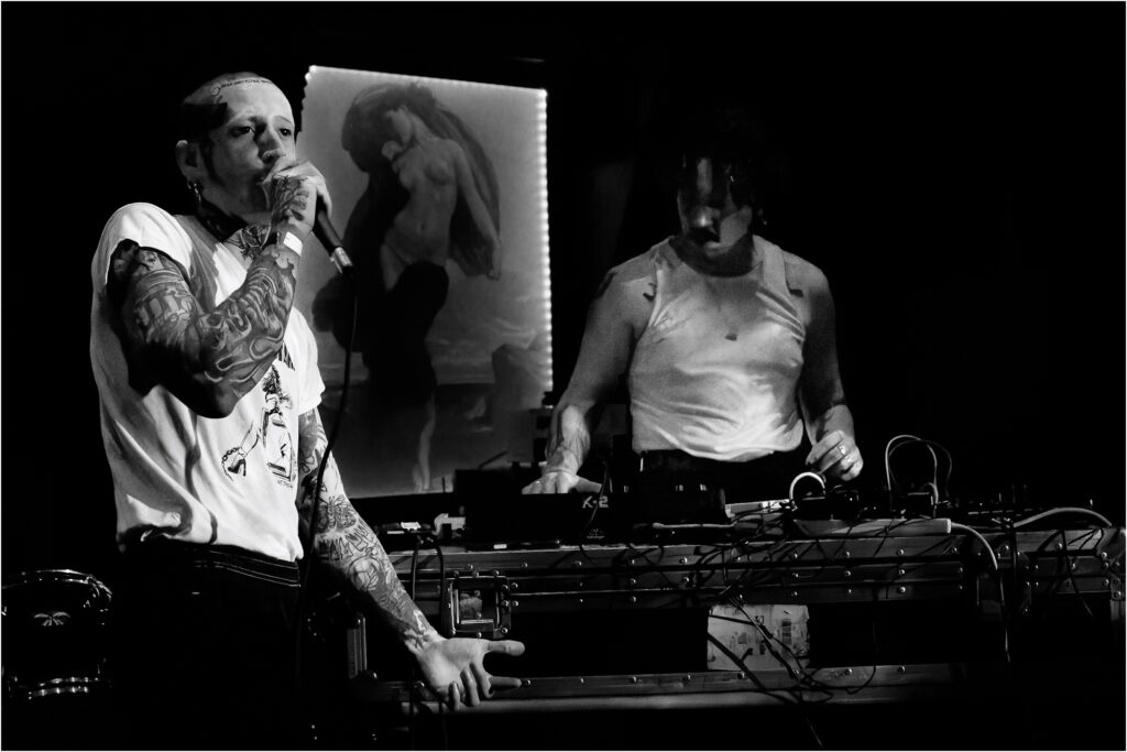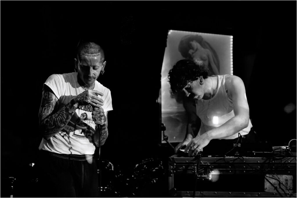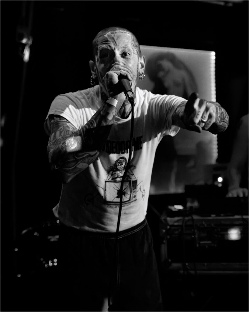 Dent: Next up: Dent, bringing extreme electronic body music from Manchester and instantly flipping the entire atmosphere. Where Anaemia suffocated the room in riffs, Dent electrified it. Their set felt like stumbling into an underground industrial club at 3am, distortion-soaked, bass-heavy, and uncomfortably exhilarating in the best possible way.