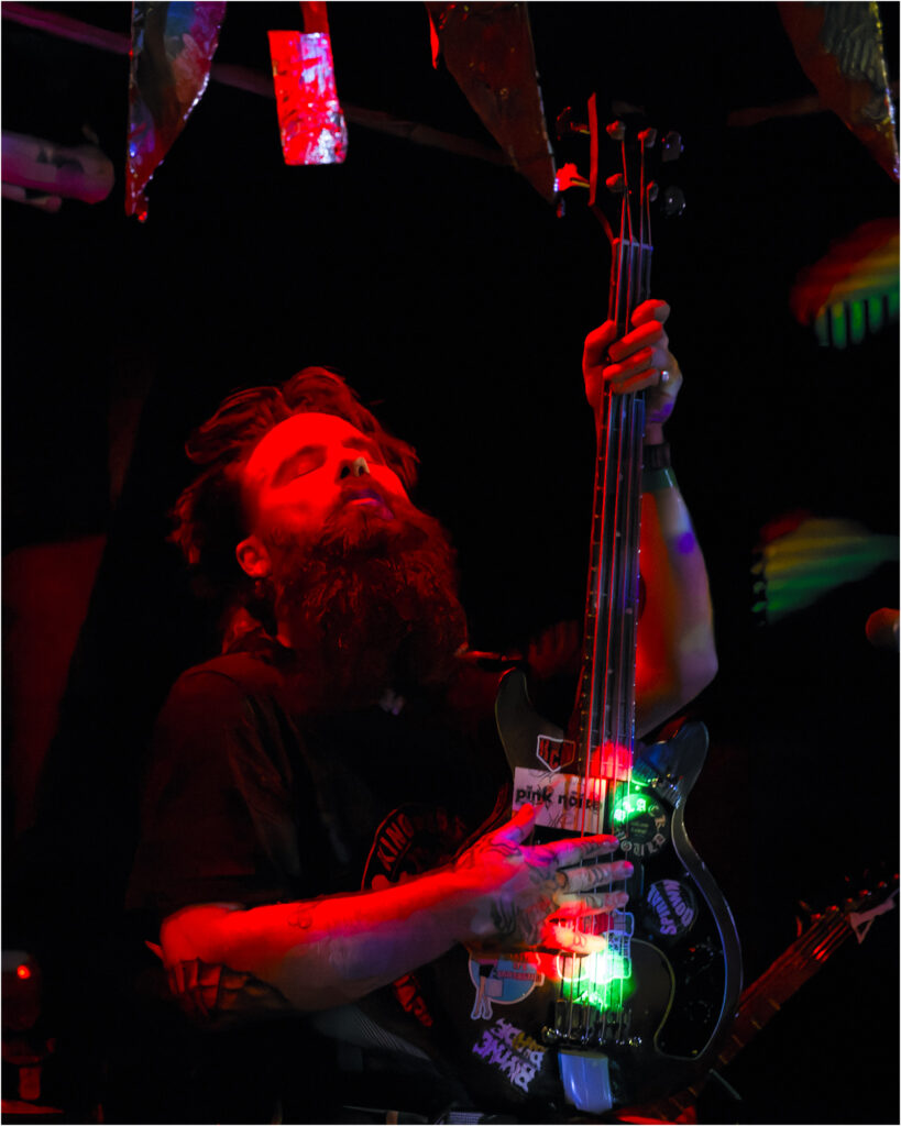 Anaemia: Wolverhampton’s own Anaemia opened the night with a set that punched straight through the early-doors haze. Their brand of sludge isn’t the slow-and-low misery crawl some bands lean on, it’s acidic, tense, and wired with a feral undercurrent. Amber, as always, was impossible to ignore, her Schecter E-1 FRS Special Edition cut through The Dive’s mix with a serrated precision that sat beautifully against the band’s heaving rhythm section.
