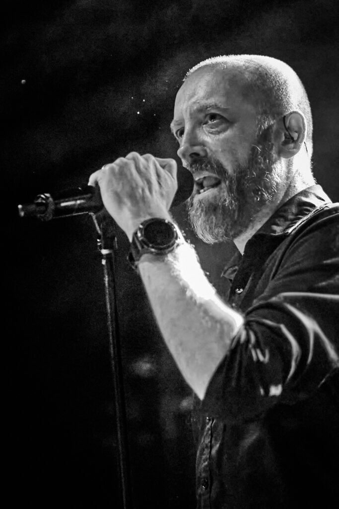 The tinkling of the piano signifies they’re starting with Draconian Times’ magnificent opening track ‘Enchantment’. Sadly the first verse of Holmes’ vocal lines were lost to technical difficulties, but after a quick microphone swap he’s in business and his trademark baritone vocals are thundering through the Manchester Academy.