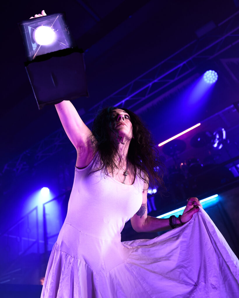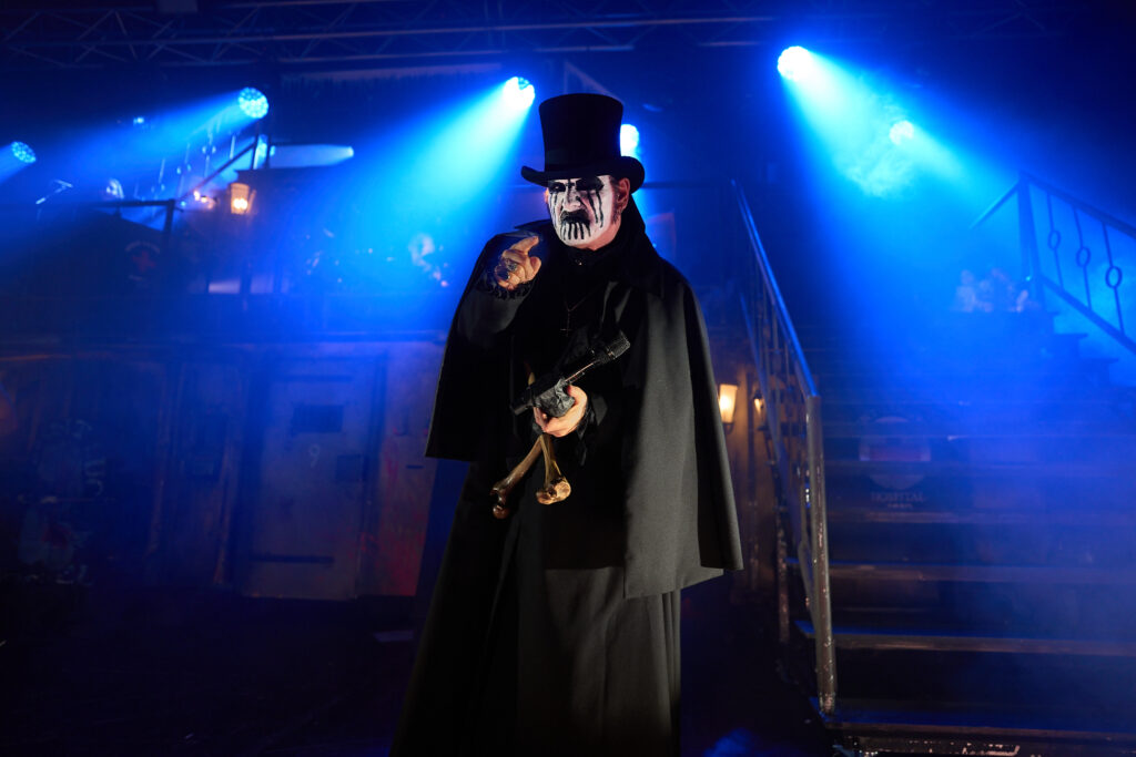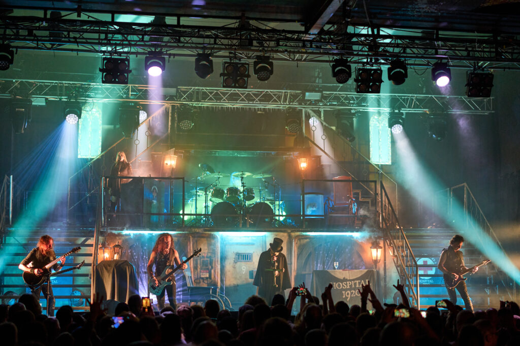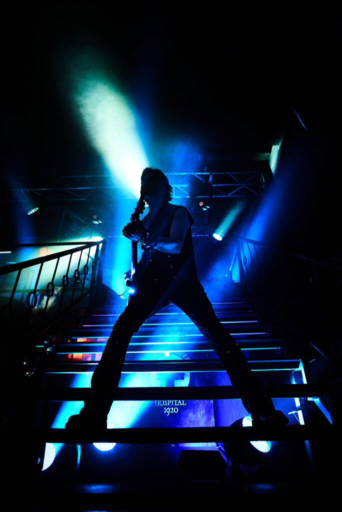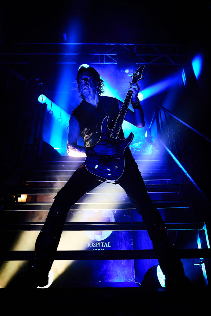 In stark contrast to the first two bands minimalist approach to stage props, Danish metal veteran King Diamond unveils a huge multi-level stage set, with drums and backing vocalist Hel Pyre raised up high.… and Abigail’s coffin taking centre stage. ‘Saint Lucifer’s Hospital 1920’ banners reference the upcoming album slated for a 2026 release, which will be his first in nearly two decades.