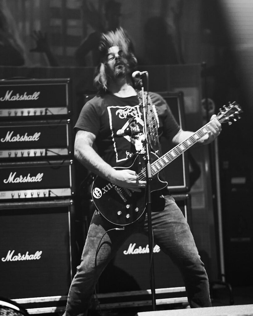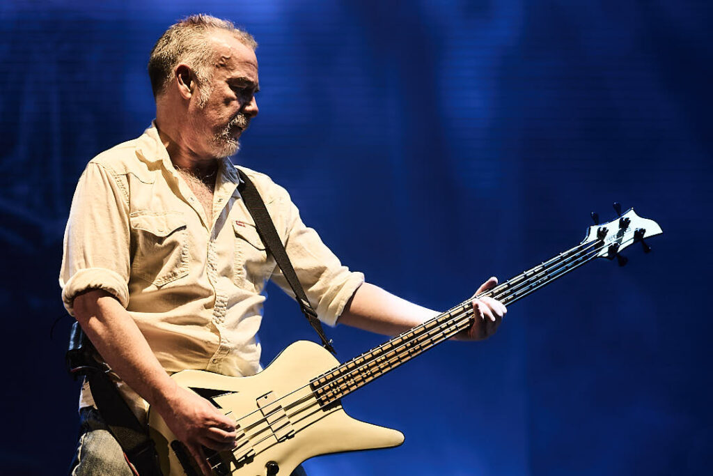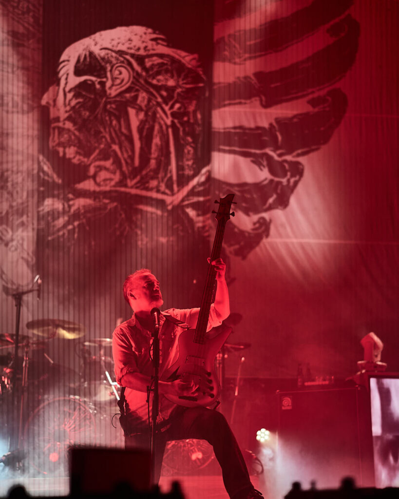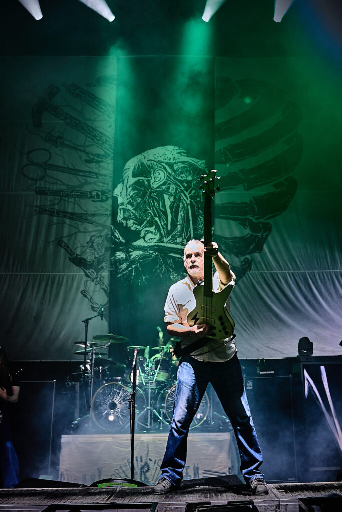 Joining them on drums tonight is Waltteri Väyrynen from Opeth – a very last-minute call up due to a sudden illness with regular sticks man Daniel Wilding. Walt wasn’t even alive when most of these songs were conceived but it matters not one jot as he’s one of the best drummers in the world today, and clearly a very handy friend to have on speed dial. As the band rip through some essential numbers from the ‘Heartwork’ album, I am spellbound and captivated. They’re bouncing on stage – guitarist Bill Steer especially – with both the music and the visuals all up tempo. They are note-perfect, smoke is rising, and flashing yellow and red lights engulf the stage. This feels like something really special is happening.