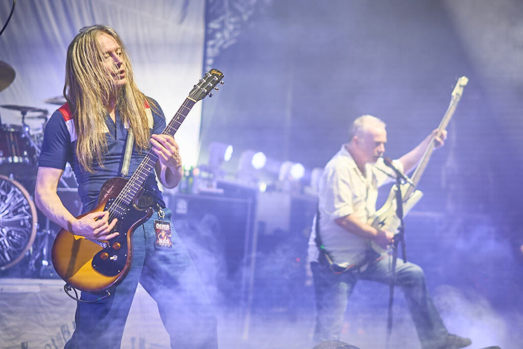 The normally loquacious and playful ‘El Cynico’ (Jeff) has been a bit quieter in-between songs than usual tonight, again perhaps due to the late line-up change, but he is at pains to acknowledge Walt’s fabulous last-minute contribution – and rightly so. An almighty roar goes up from the crowd – that was absolutely terrific! More please.