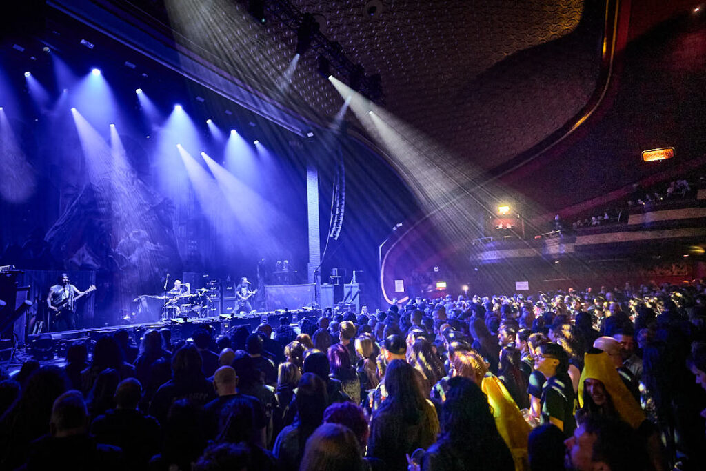 It’s Saturday afternoon (yes – 17:30 doors!) and we’re at the Apollo in Manchester – a Grade II listed, art deco concert hall for Kreator’s ‘Krushers of the World’ Tour. They’re supported by grindcore/death metal pioneers Carcass, thrash veterans Exodus, and hardcore punkers Nails. Capacity is 3500 and we should be pushing that for this line up, which is arguably the biggest name heavy metal line up of the year so far.