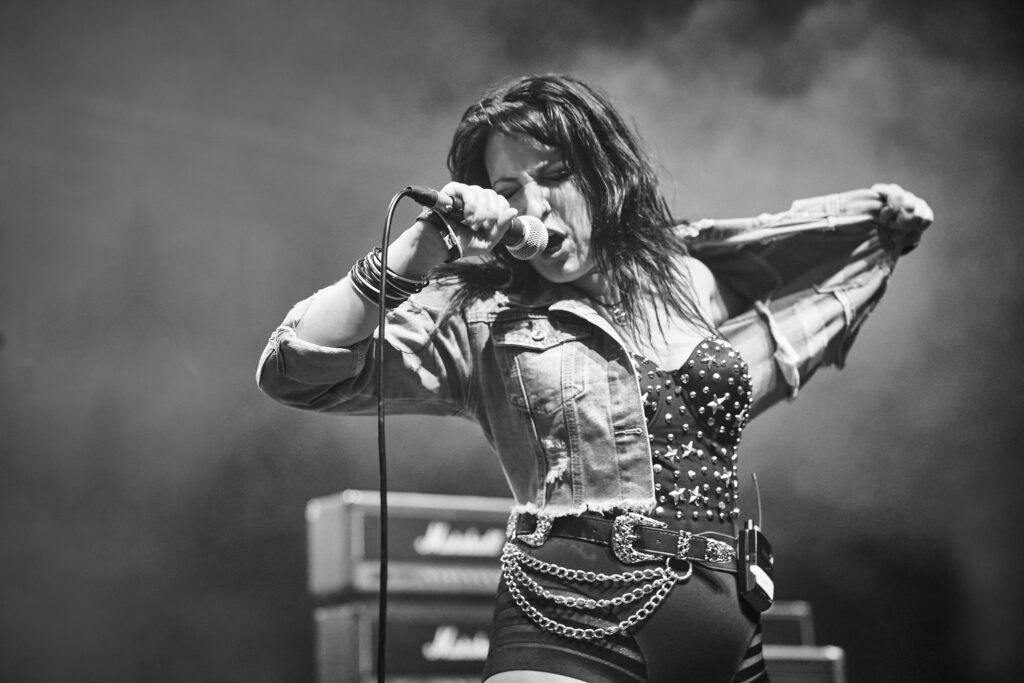 Welsh singer Chez is one of three sisters who formerly fronted the band Kane’d. Now fully fledged as a solo frontwoman, she’s been tasked with warming up the crowd with her brand of straight up vocal led hard rock, and bounds onto the stage beaming from ear to ear. She wastes no time in grabbing Wolverhampton by the scruff of the neck, forcing us to take notice. Chez is a powerful and dynamic vocalist, clad in ripped denim and swagger aplenty; tonight we get 9 tracks, 5 from the 2021 Self-Titled debut, and 4 from 2022’s Powerzone.