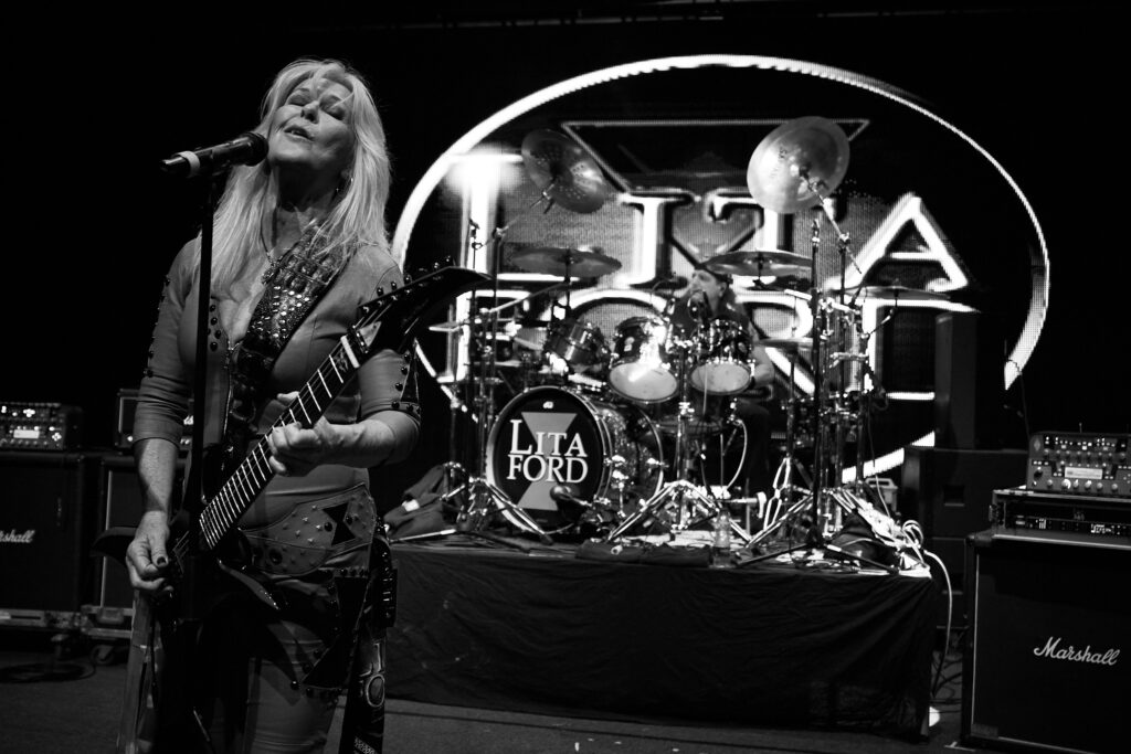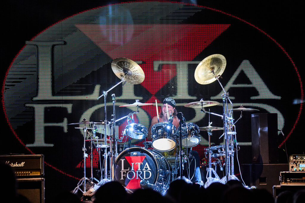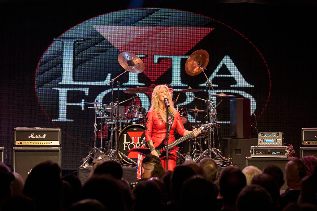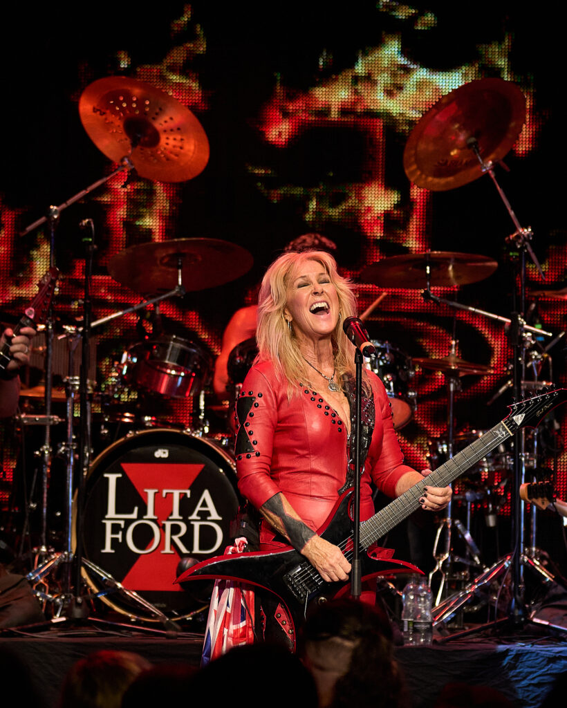 Finally it’s time for the main event, and the crowd chants “LITA!, LITA!” as the perennial First Lady of 70’s/80s rock prowls on to the stage, of course dressed in her trademark high heels and skin tight red leather jumpsuit.