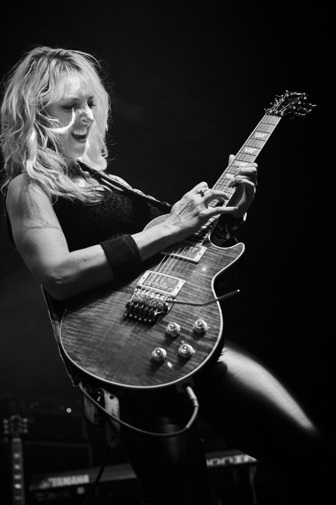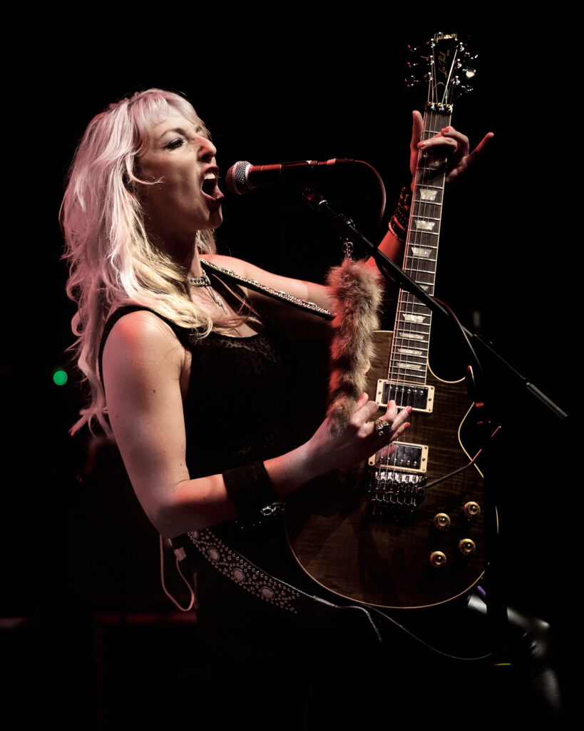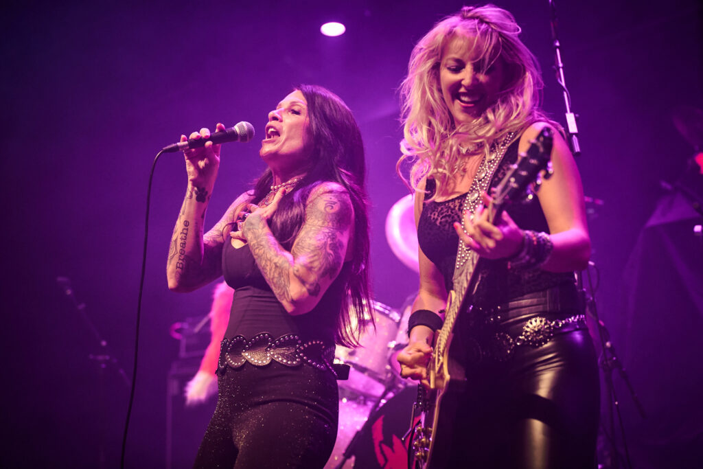 They start strong with Bon Jovi-esque “Rev It Up”, and the first of 2 Jeff Paris covers “Charmed Life”. Already by this point, Rosa has firmly answered any questions one might have asked about her worthiness as the band’s new vocalist, and with the other three ladies all mic’d up, the trademark Vixen harmonies and gang vocals are sounding brilliant. Julia Lage is a fantastic bass player – I’ve seen her strut and swagger all over the stage at KK’s Steel Mill with the Smith/Kotzen band a couple of years ago, and guitarist Britt Lightning is a riff whirlwind of headbanging blonde hair. Backed up with Roxy’s trademark groove and stick tricks galore, the girls are firing on all cylinders.