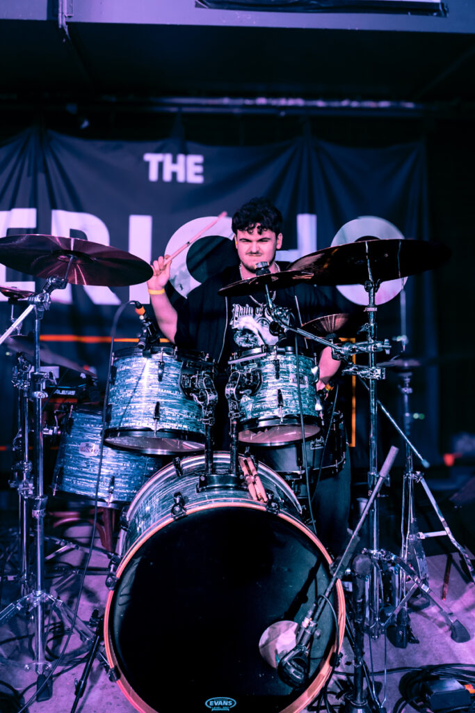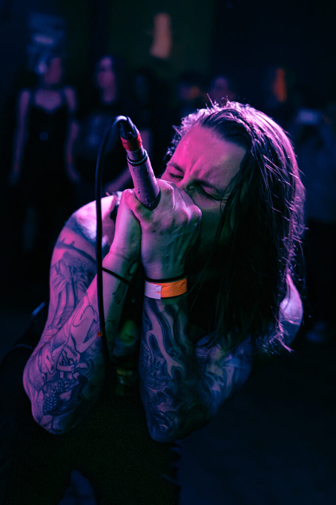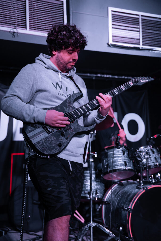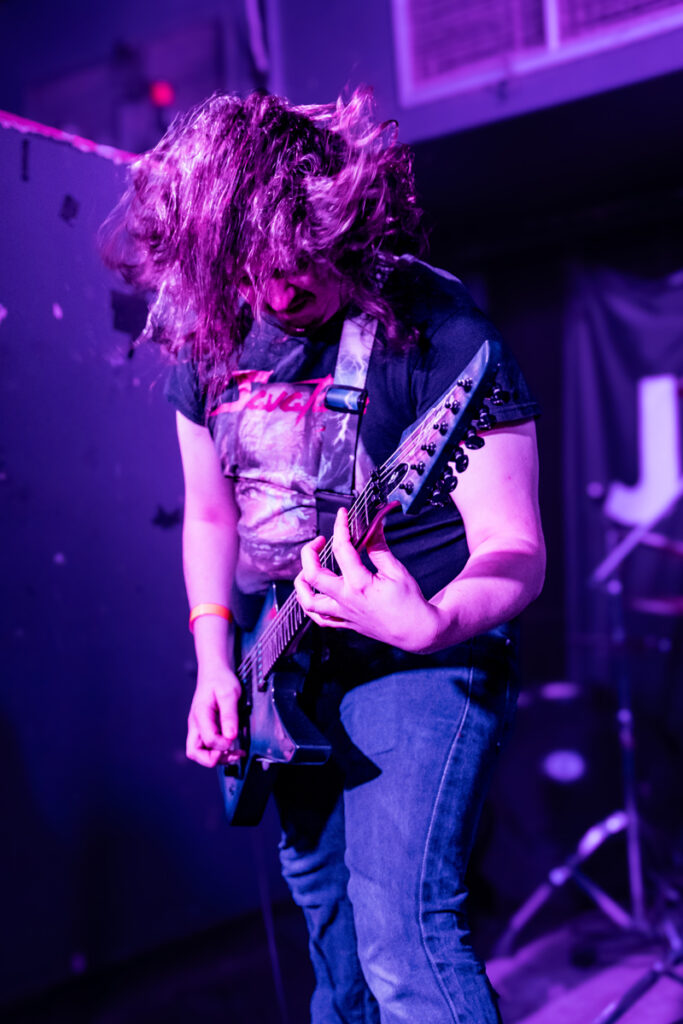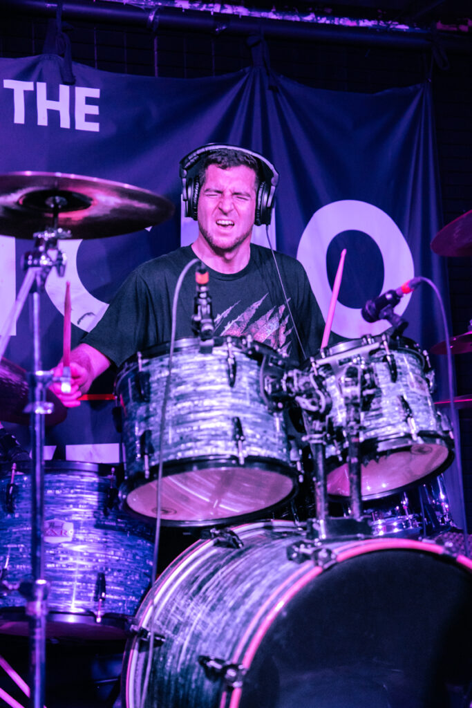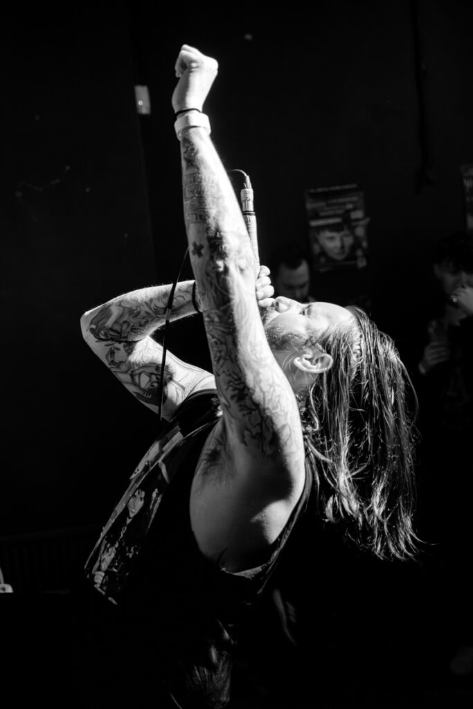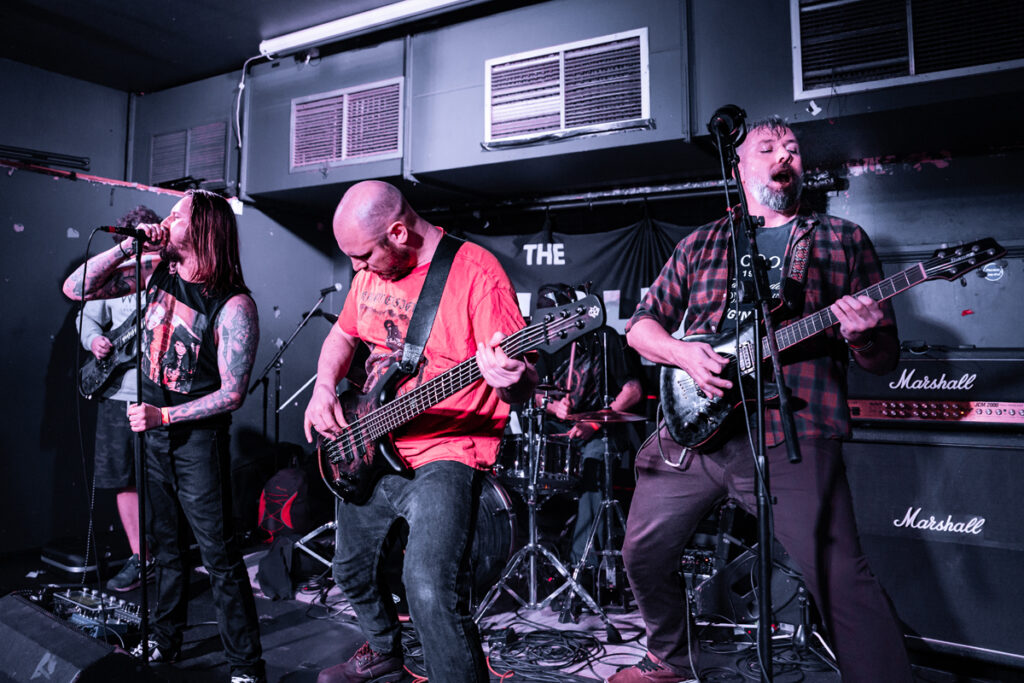 Barbed Wire are up first and what a way to open. This trio are not messing around and explode onto the stage with brutal screaming vocals and chugging breakdowns in vast quantities. The crowd are ready to go, and it takes a matter of seconds for the pit to open. If you like a band you can “BLEGH” to, these are your guys. They are loud; so loud the floor is vibrating, and the bass can be felt all the way to the back of the room. The sound is punishing, relentless and creates an atmosphere of perfect chaos. They own the stage and command the crowd and certainly make their presence known; if you are anywhere in the vicinity of these guys when they are playing; you will know about it.
