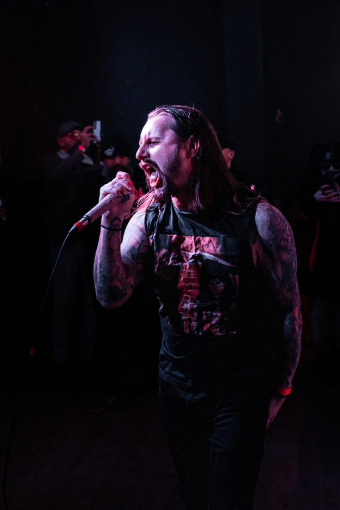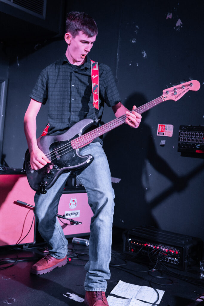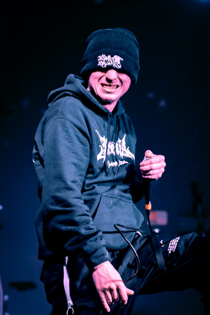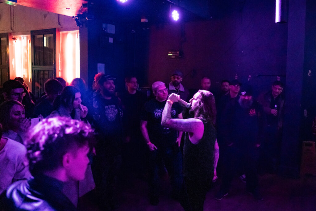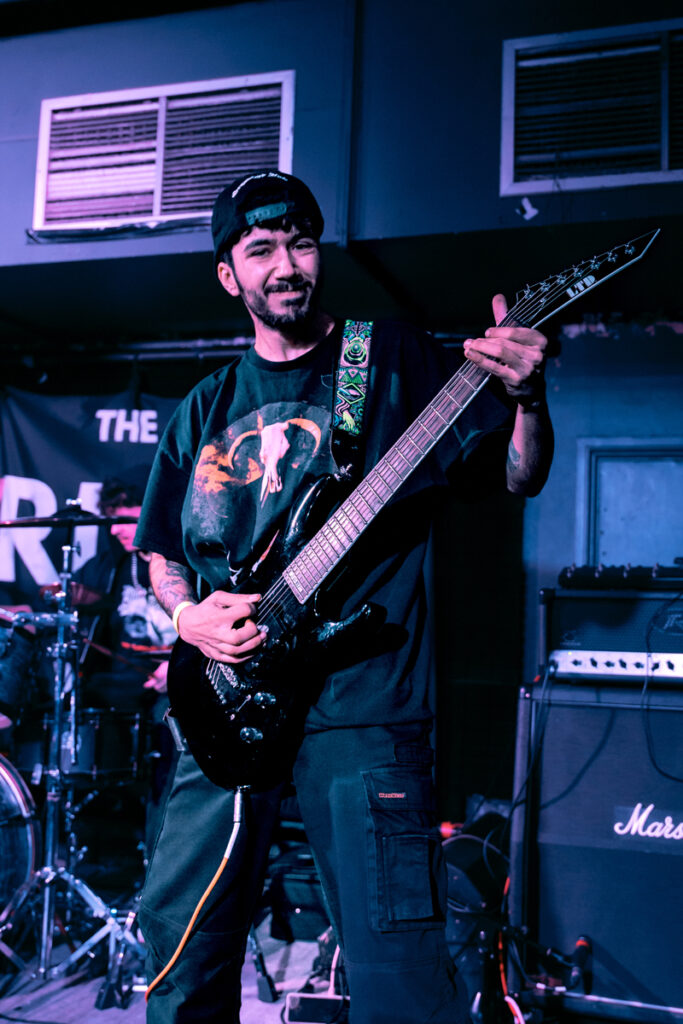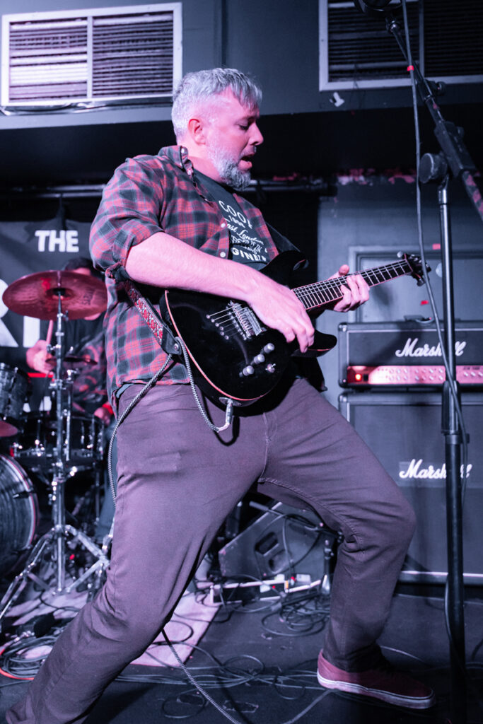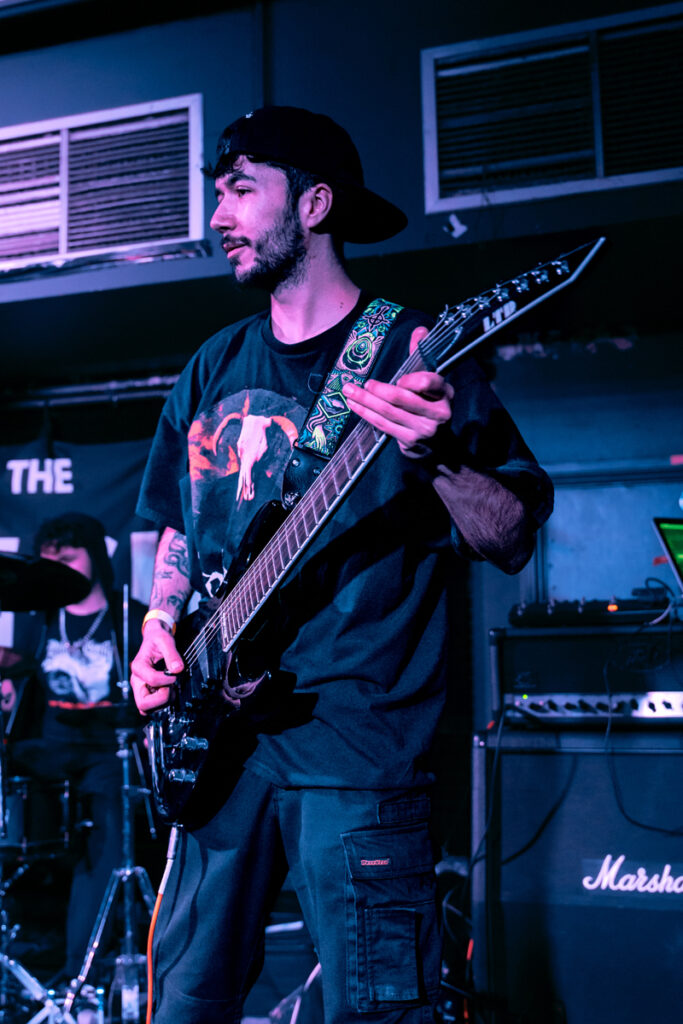 Barbed Wire are up first and what a way to open. This trio are not messing around and explode onto the stage with brutal screaming vocals and chugging breakdowns in vast quantities. The crowd are ready to go, and it takes a matter of seconds for the pit to open. If you like a band you can “BLEGH” to, these are your guys. They are loud; so loud the floor is vibrating, and the bass can be felt all the way to the back of the room. The sound is punishing, relentless and creates an atmosphere of perfect chaos. They own the stage and command the crowd and certainly make their presence known; if you are anywhere in the vicinity of these guys when they are playing; you will know about it.