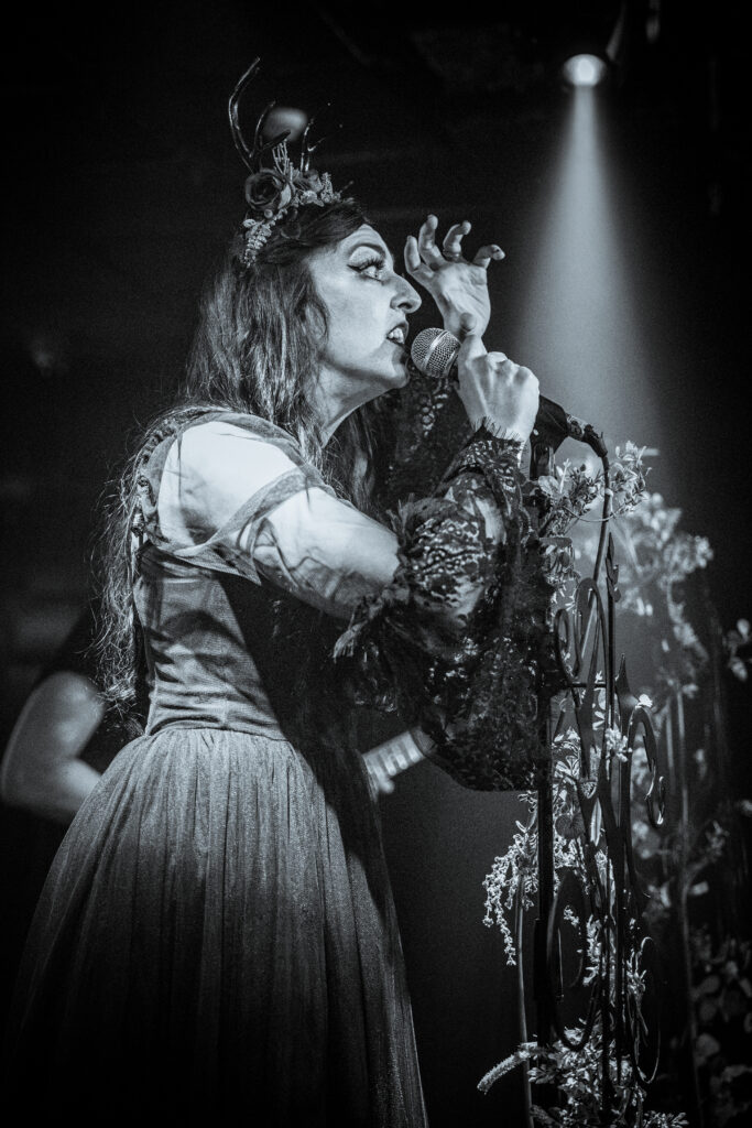 Æl Fierlen are up next and take us on a journey into an Anglo Saxon forest dreamland, in what was to be a memorable, haunting and ethereal set. This band successfully and beautifully manage to blend post black metal with folk/pagan vibes and deliver an impactful set that leave people wanting more. They draw an enthusiastic crowd and are themselves surprised at the packed room despite the early hour.