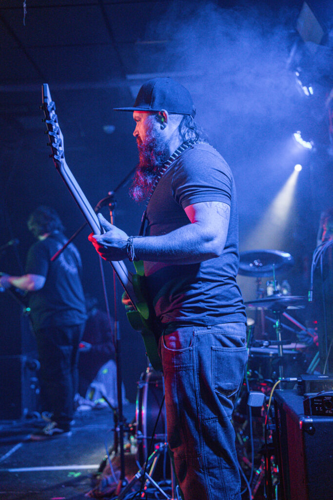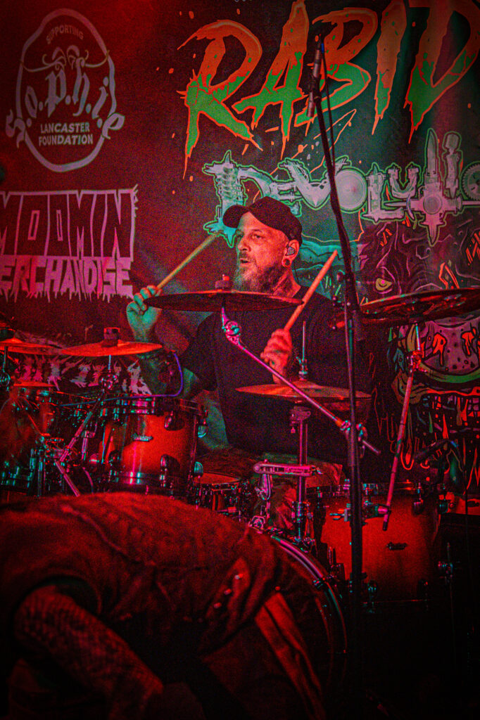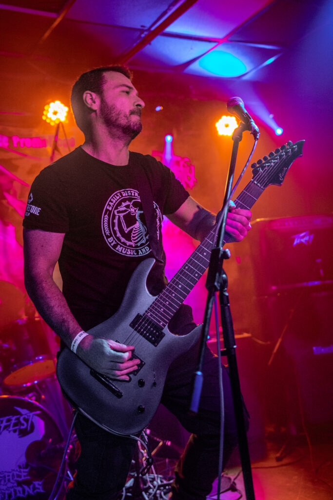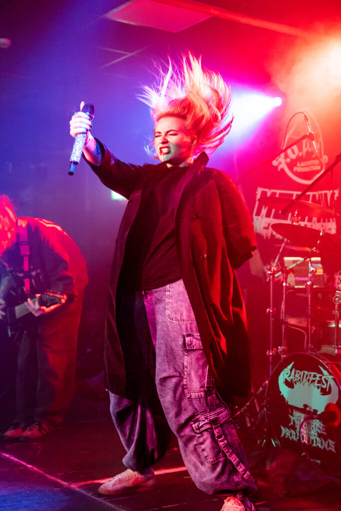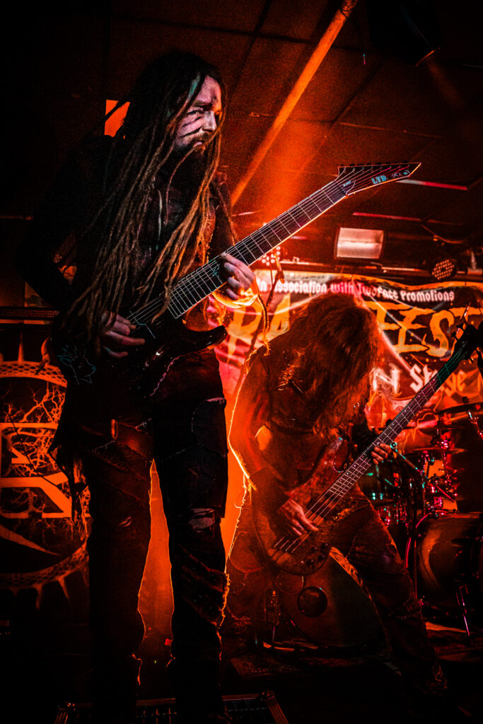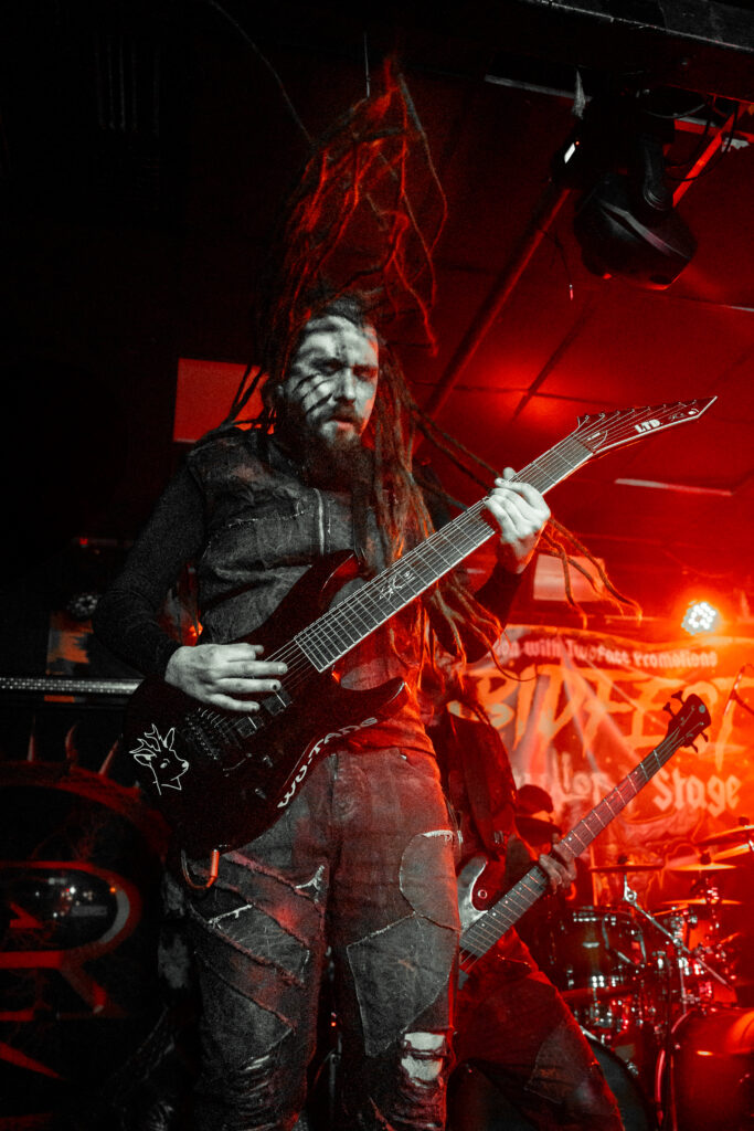 Day two and despite a relentless, action packed day of metal yesterday, Rabidfest’s patrons are present and correct and show no signs of weariness. Beers are flowing, and the venue is buzzing as Oxford nu metallers Mondegreen are up to catapult us all into Rabidfest Day 2. Despite being the days opener and on relatively early, they still manage to pull in a more than decent crowd. Their sound is distinctive and genre colliding, blending nu metal with elements of melodic death metal and doomy sludgy riffs.