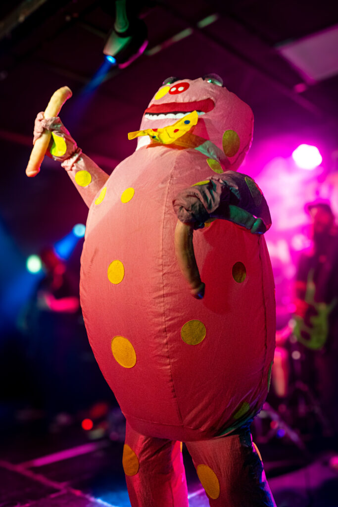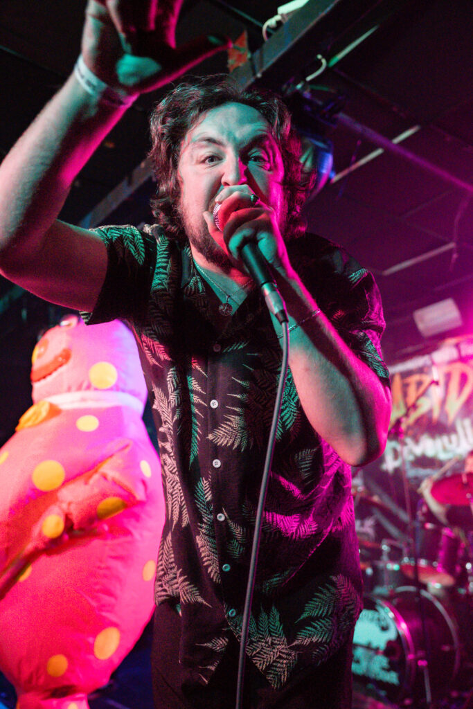 The room is packed for Raised by Owls who deliver a crushing set of extreme, heavy, enjoyable ridiculousness. Just when you thought you’ve seen everything, Raised by Owls arrive and make you redefine what constitutes a metal show. At times you wonder what kind of realm you have entered. It’s brutal, hilarious, wonderful escapism. Launching into “Ainsley Harriott Advises You to Give Your Meat a Good Ol’ Rub” sent the crowd wild and left the venue staff visibly confused at what was unfolding in front of them. Particularly when Mr Blobby took to the stage with his rather interesting props!