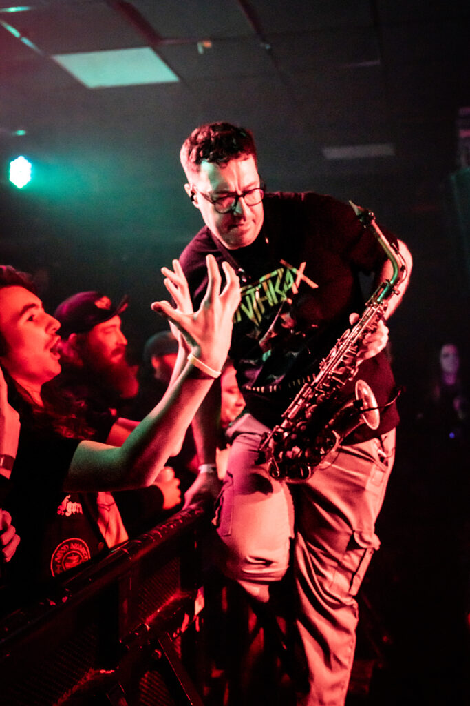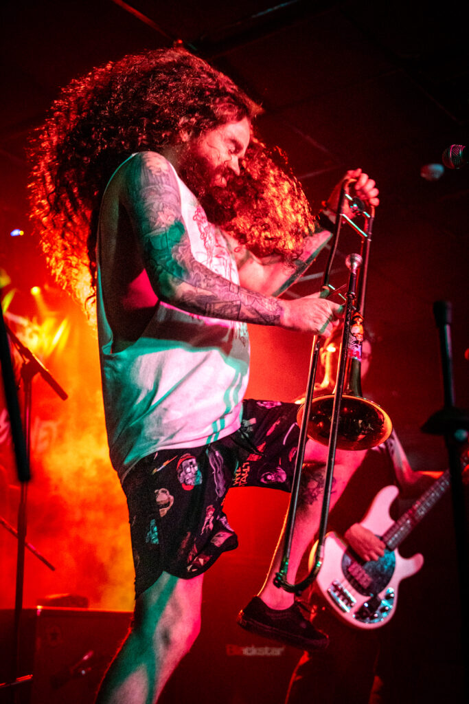 The collective joy of the room tangibly increased when Redeemon took to the stage. It’s not often you see a trombone appear at the load in of a metal show, much less so alongside a trumpet and a saxophone. We all knew we about to see something “a bit different.” Any potential scepticism instantly disappeared upon the opening notes of the first song, and closeted skankers began to emerge as the Skacore eight piece brought the groove, the breakdowns and the fun from start to finish.